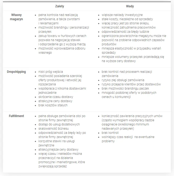 - Mniejsze produkty natomiast mogą trafiać do własnego magazynu lub do operatora w modelu fulfillment, co pozwala przyspieszyć czas wysyłki i zapewnić wyższą jakość pakowania.