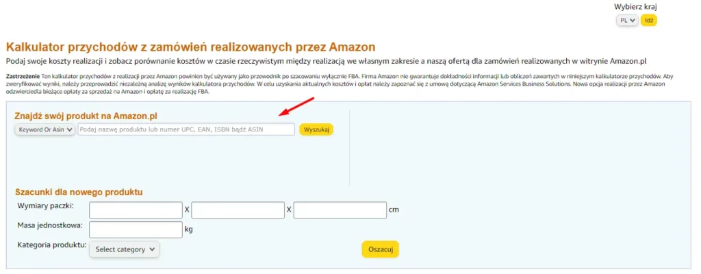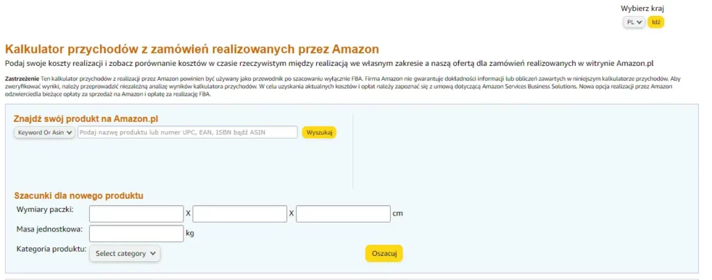 👉 Kalkulator przychodów FBA – Amazon Seller Central